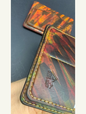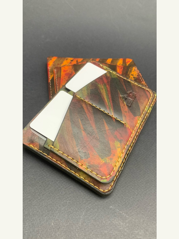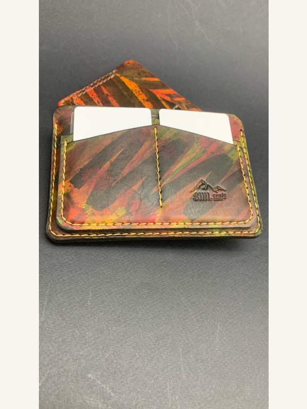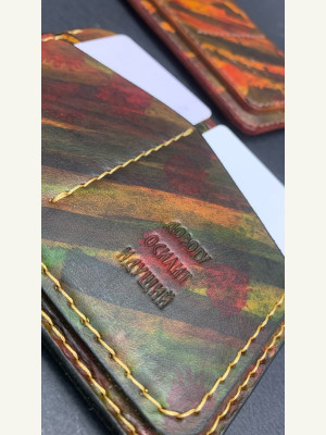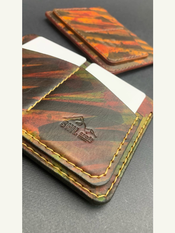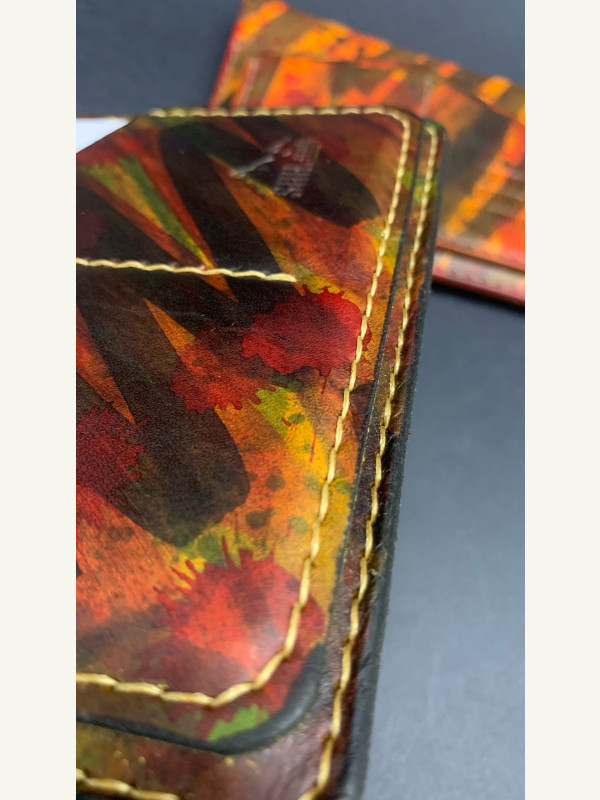 Кожа юфть рыжего цвета, покрасил проникающей краской, и закрыл кремом из карнаубского воска, прошил нитью 0,6мм. Trenkilo.