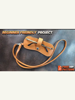 Простая выкройка для начинающих кожевников, чехол для очков с ремешком который можно повесить на шею от Leathercraft with Kaka.
