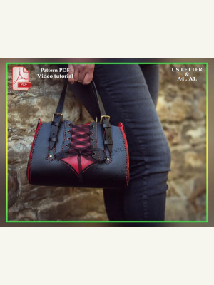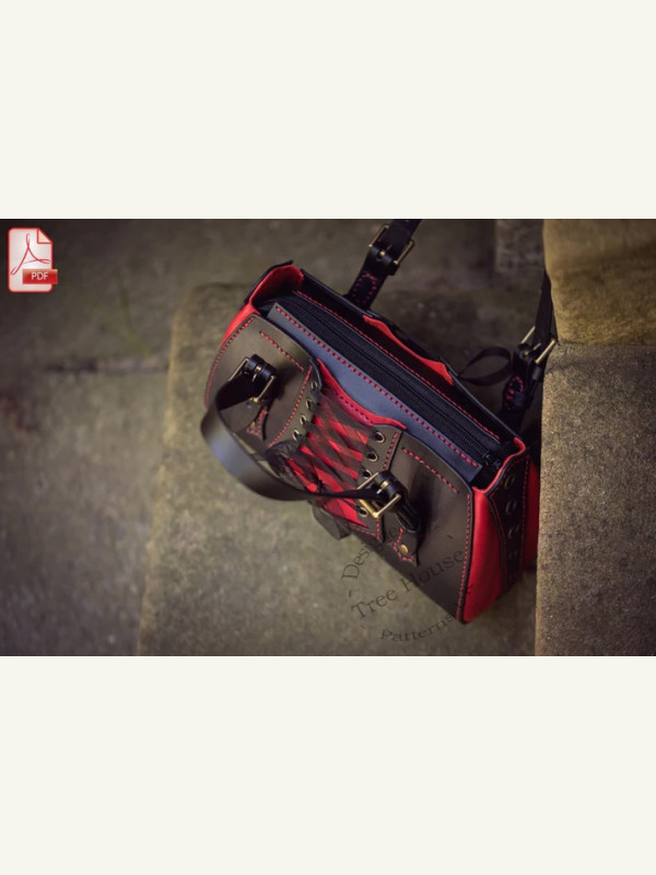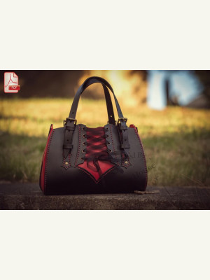 Бесплатная PDF выкройка для сумки “Elisabeta” в готическом стиле в двух вариантах: открытая сумка и сумка на молнии. “Сумка-корсет” с одним внутренним карманом, застегивающимся на молнию, и регулируемыми ручками. Это маленькая сумочка для вечернего выхода.