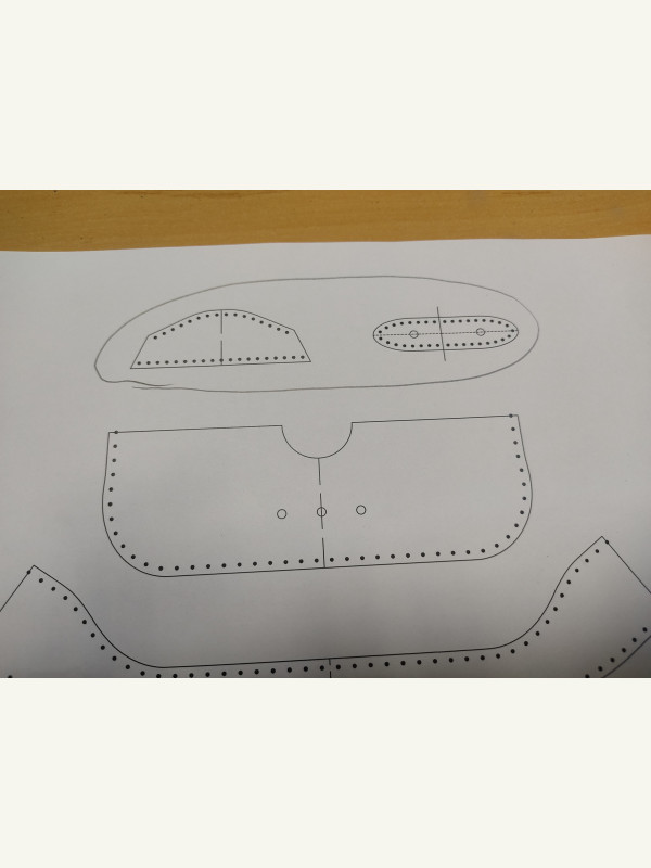 Кто нибудь шил этот чехол? Не могу разобраться с выкройкой, точнее со внутренней деталью, на которую очки опираются. Она двух составная, а как ее шить и пришивать в самому чехлу не соображу никак. На последнем фото карандашом обвел. За помощь буду очень признателен.