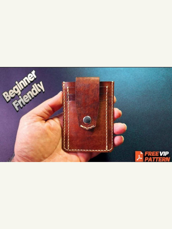 Выкройка вертикального кошелька (скорее картхолдера) с застежкой на кнопке от Leathercraft with Kaka.