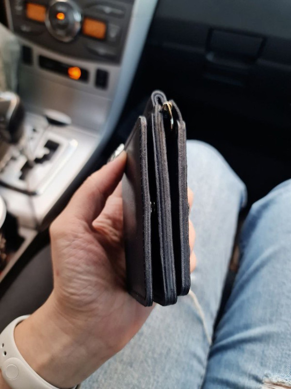 Выкройка зажима для купюр с дополнительными отделениями (откидными кармашками). Стоит проверить размеры, российские крупные купюры могут не поместиться.