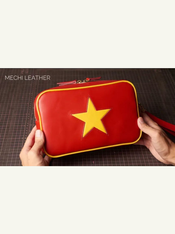 Небольшая сумочка формата кроссбоди, напоминающая вьетнамский флаг, от Mechi Leather.