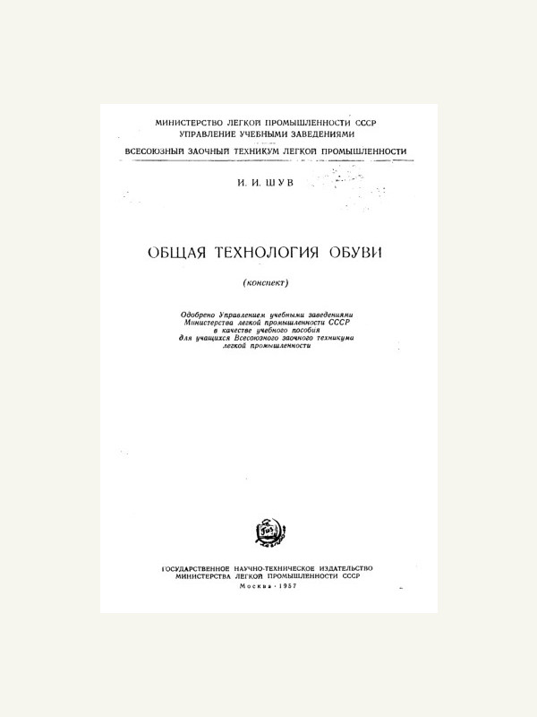 Книга. Общая технология обуви. Конспект - И.И. Шув, 1957г.