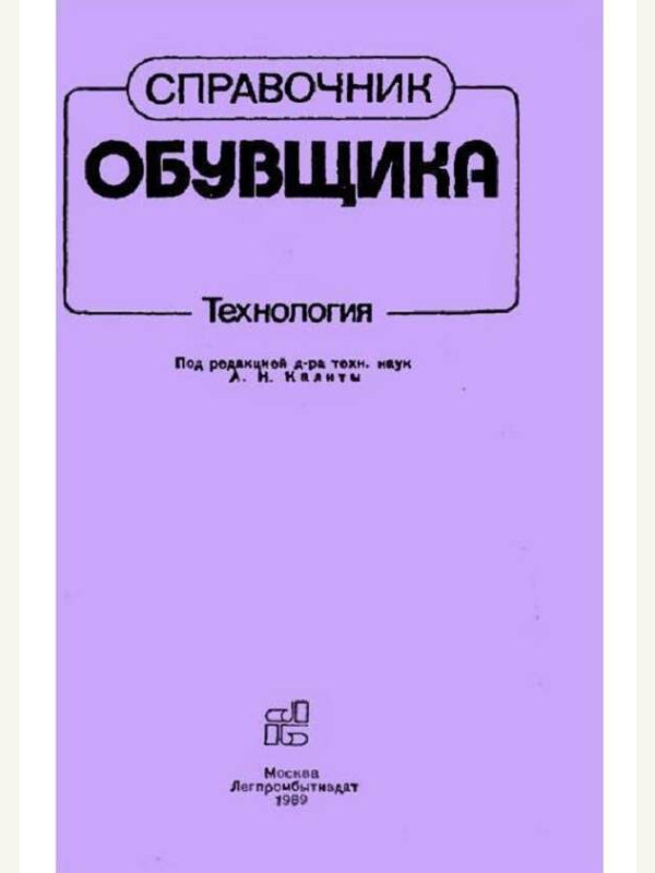 Справочник обувщика (технология) под ред Калиты А.Н 1989