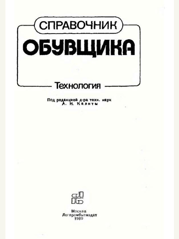 Книга. Справочник обувщика - под ред. А.Н. Калиты, 1989г.