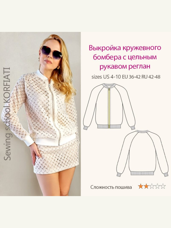 Выкройка женский женский жакет — бомбер размеры 42-48 Рос.