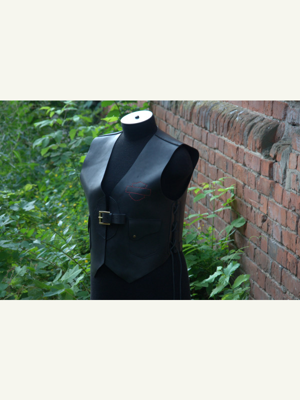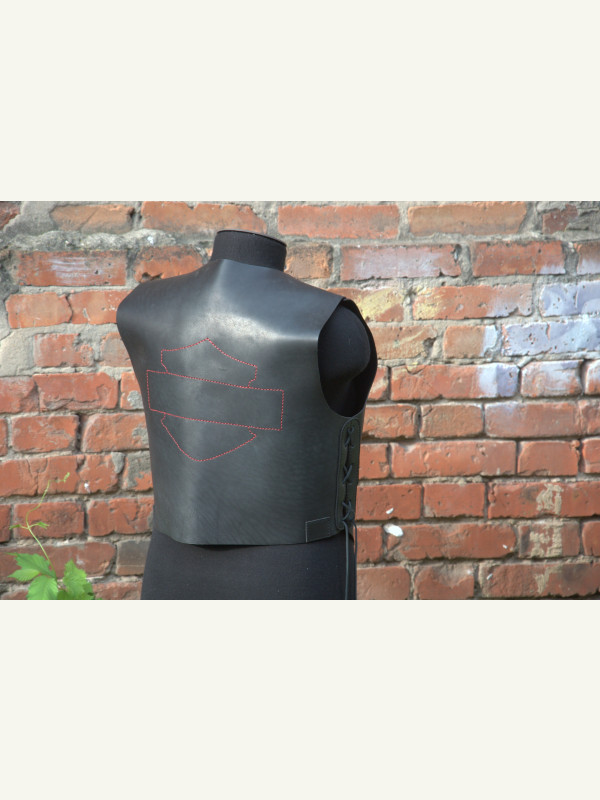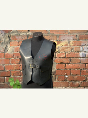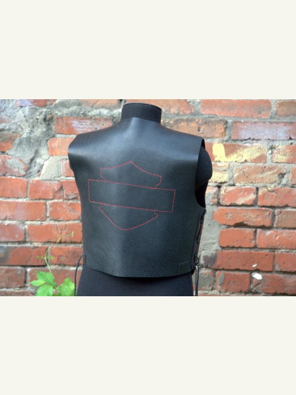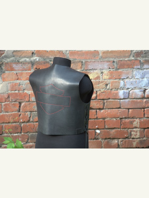 P.S. Заказчик принёс аппликацию со своим логотипом вышитую на ткани. Начал пришивать- получилась полная фигня... Решили убрать! Но, остались отверстия на кофте- то... Пришлось красной нитью хоть пройти. Заказчику такой вариант понравился. Хотя получилось-то, не айс, как ровно. Зарекался ведь, из тряпок на кожу ничего не пристраивать! Вот результат... ???
