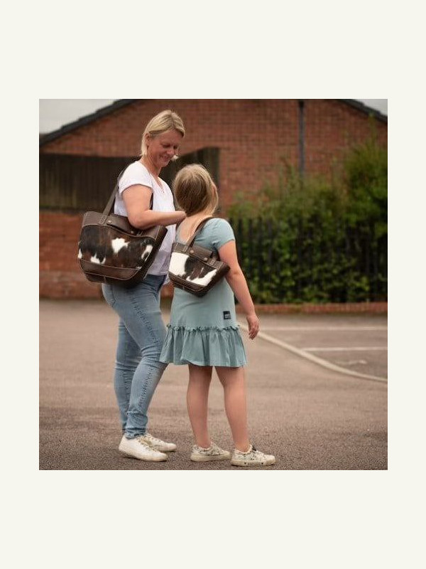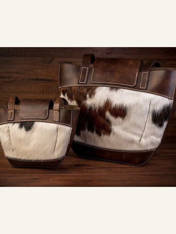 Выкройки комплекта из двух сумок разного размера с меховыми вставками от Tree House Pattern.