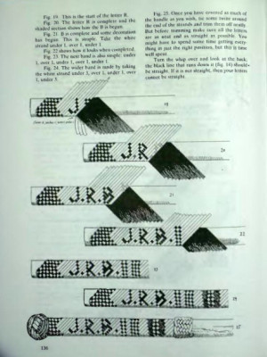 Также включены инструкции по плетению имен на плети и использованию рисунков для плетения ручек плети.