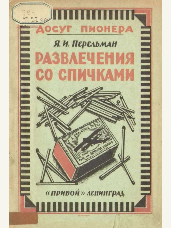 Книга. Развлечения со спичками - Я. И. Перельман, 1926г