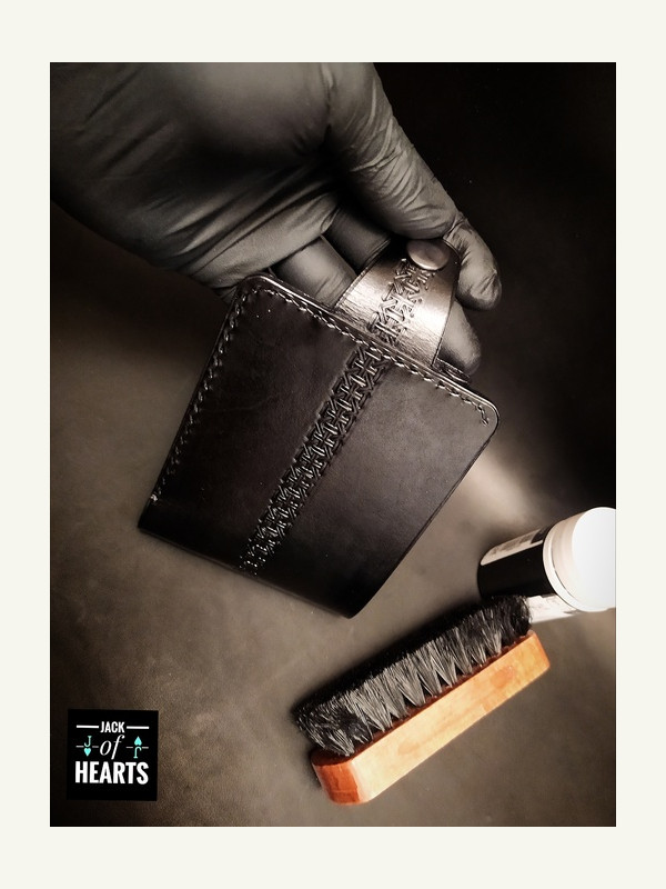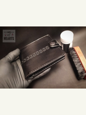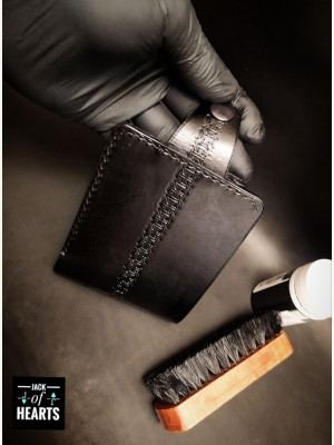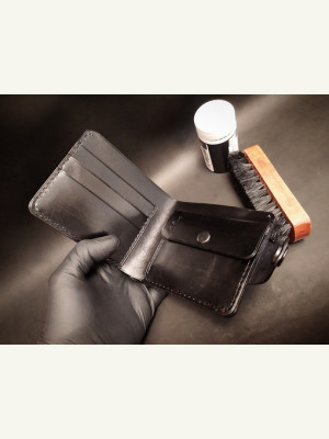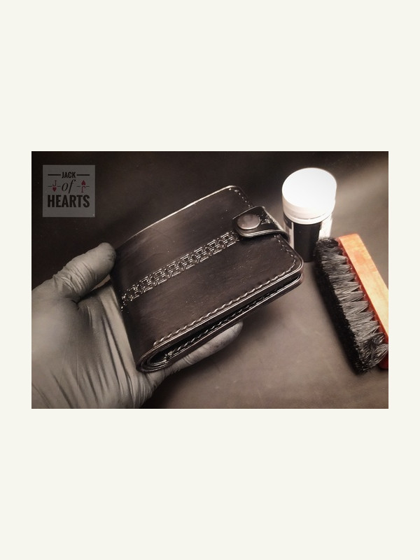 Кошелек который решил сотворить на Новый год для отца.) Выкройку брал в интернете, что голову ломать. Кожа растишка, без окраски. Наружная часть из 1,3-1, 5мм. Внутренние части 1 мм. Окрашивал, полировал.