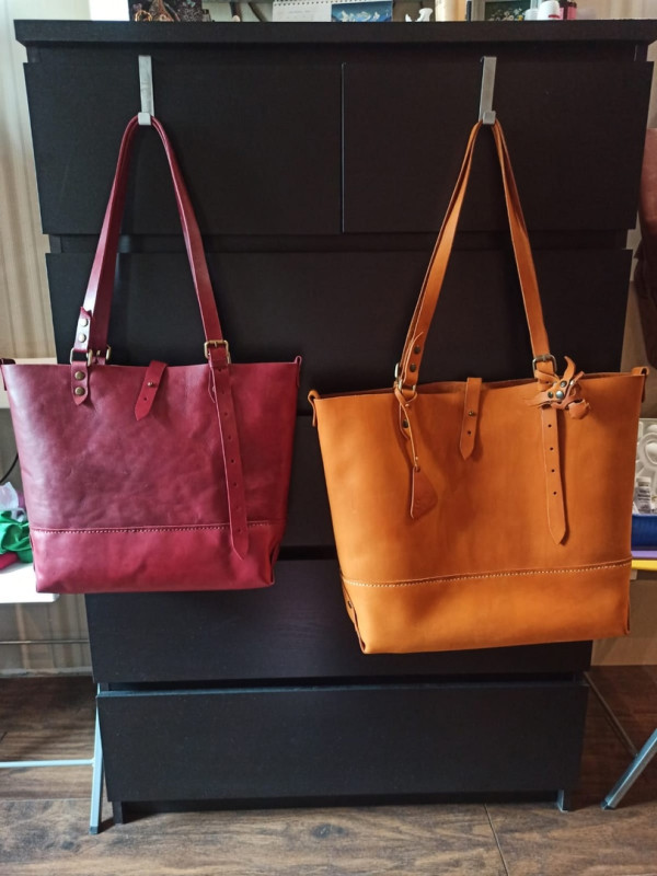 На выходных у супруги появился ещё один шопер, полюбившегося дизайна в размере от оригинальной выкройки 80%. Кожа юфть от V. I. B. Leather: vk.com Оранж-vk.com Вишня-vk.com