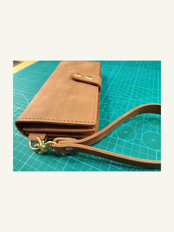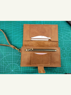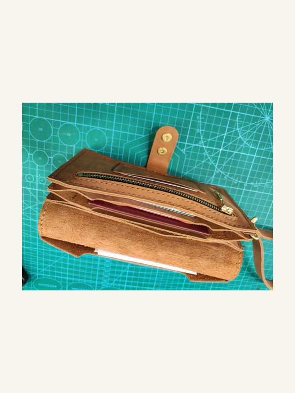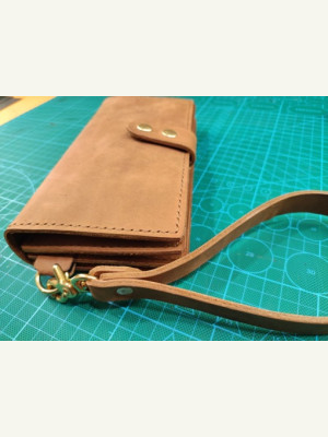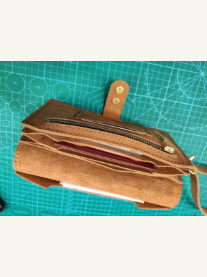 Это барсетка от ютуб-канала "Кожаные изделия своими руками", и на вашем сайте она уже есть. Я переделал выкройку под шаг 5 мм, и карман на клапане сделал под размер СТС
