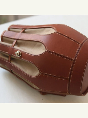 Такая оригинальная выкройка однозначно должна быть в арсенале кожевника? Ведь её можно использовать не только в качестве сумки, но и для интерьера подойдет! Немного вазу напоминает, а Вы как думаете как ещё можно использовать такое изделие?