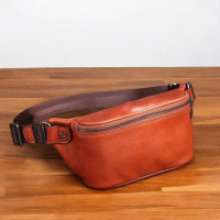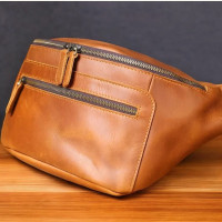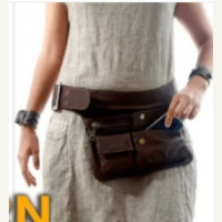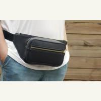 кожаная сумка на пояс с двумя карманами