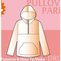 Выкройка универсальный пуловер-толстовка с капюшоном, карманом кенгуру и застежкой поло на молнии (выкройка мужская/женская/детская)