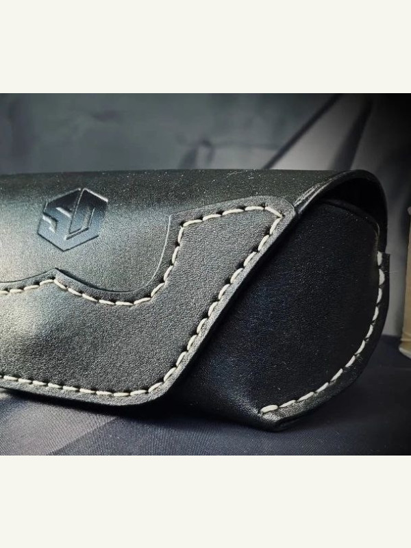 Выкройка чехла для очков уже готова. Всё просто: выбираете кожу, переносите контур, аккуратно вырезаете и сшиваете.